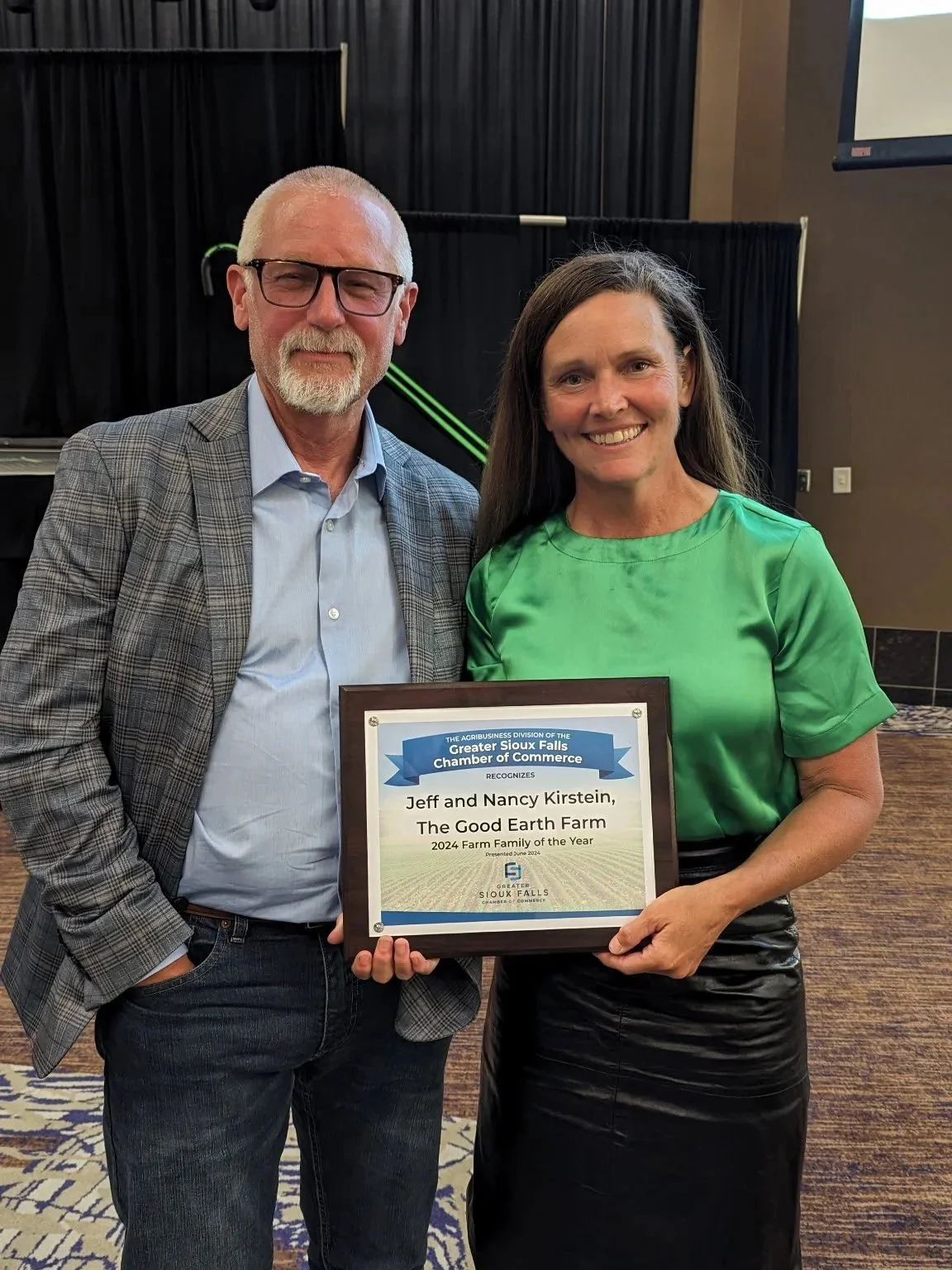 In 2024, Nancy and Jeff were named Farm Family of the Year by the Greater Sioux Falls Chamber of Commerce. The award honors farm families who embody South Dakota’s agricultural heritage through their commitment to farming, strong family values, and meaningful contributions to the local community and regional economy.